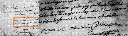 Cet acte est instructif, on y apprend qu'il est né en 1696 à Marsa, ce qui va se révéler très important. La sœur du neveu Palauqui s'appelle Mariette, elle mourra, peu de temps après son frère le 24 mars 1788 à l'âge d'environ soixante ans. Elle a été ensevelie dans le cimetière des Bains par le curé de Serres Henri Pugens, en présence du curé François Cauneille.